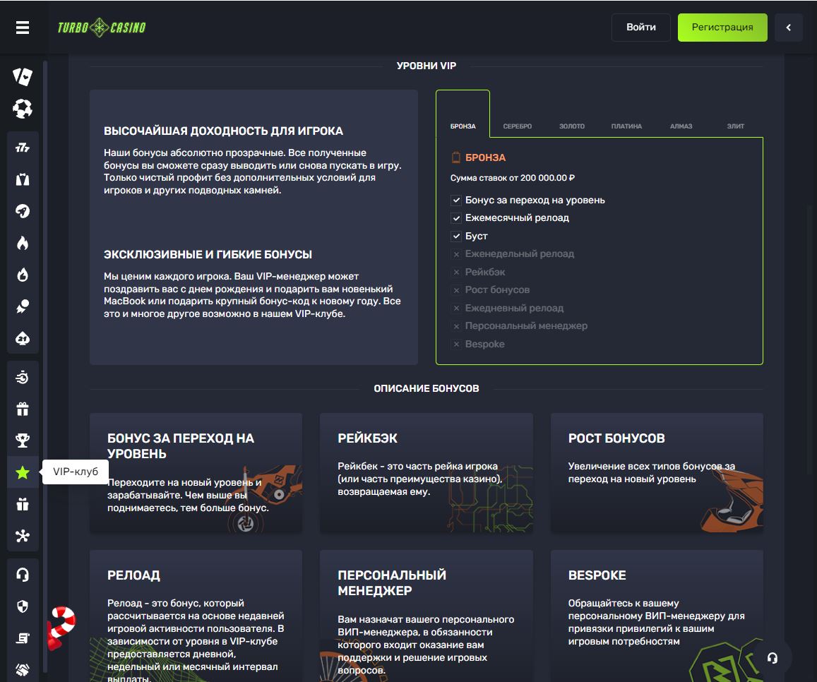 Один из главных преимуществ Turbo Casino — это его профессиональный подход к игровому опыту. Онлайн-казино предлагает широкий выбор игр, включая слоты, настольные игры, видеопокер и многое другое. Благодаря сотрудничеству с ведущими разработчиками программного обеспечения, такими как NetEnt, Microgaming, Play’n GO и другими, Turbo Casino гарантирует высокое качество игрового контента и захватывающий геймплей.